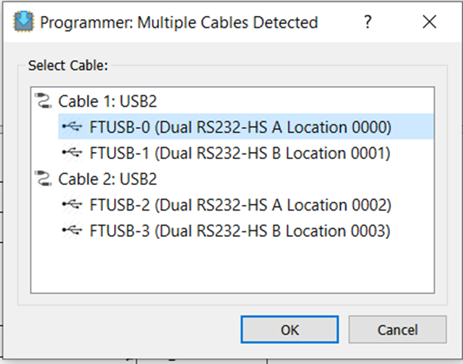 1) Cable 1: FTUSB-0 is for JTAG bitstream configuration