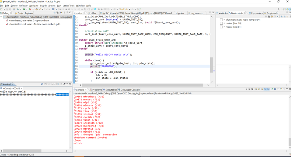 8) You should be able to successfully run OpenOCD debugger, with printout in Terminal after this.