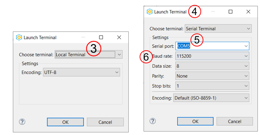 3) Choose Serial Terminal in Launch Terminal popup window.