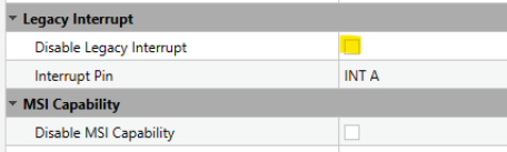 Uncheck the box for "Disable Legacy Interrupt" to enable the Legacy Interrupt. This is a controller code requirement.