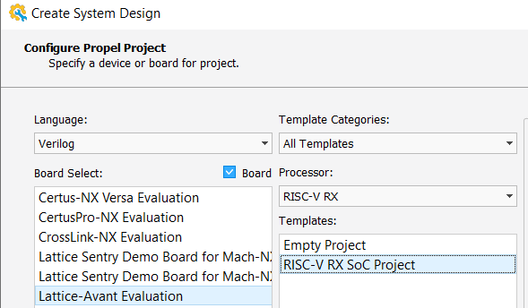 Create an Avant-E RISC-V RX based SoC Project from Propel Builder/Propel SDK