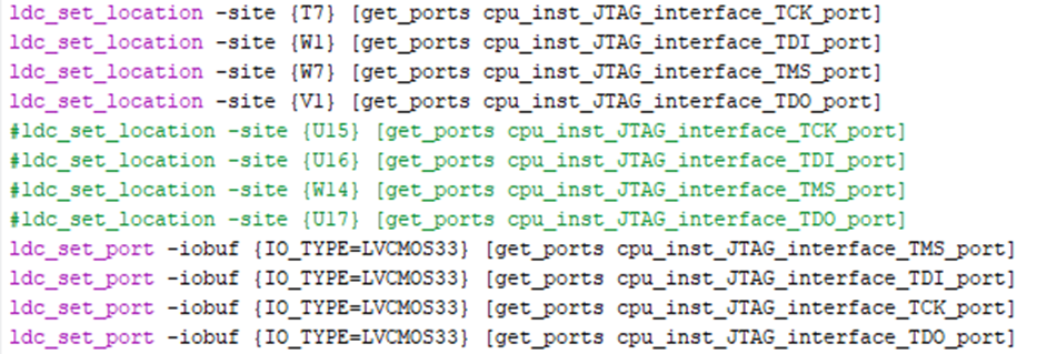 - Note: Technically you may assign any GPIO ports to TMS, TDI, TDO and any PCLK ports to TCK for your convenience, but some of the assignment might cause mapping error or par error, which is software bug and will be fixed in Radiant 2023.1.