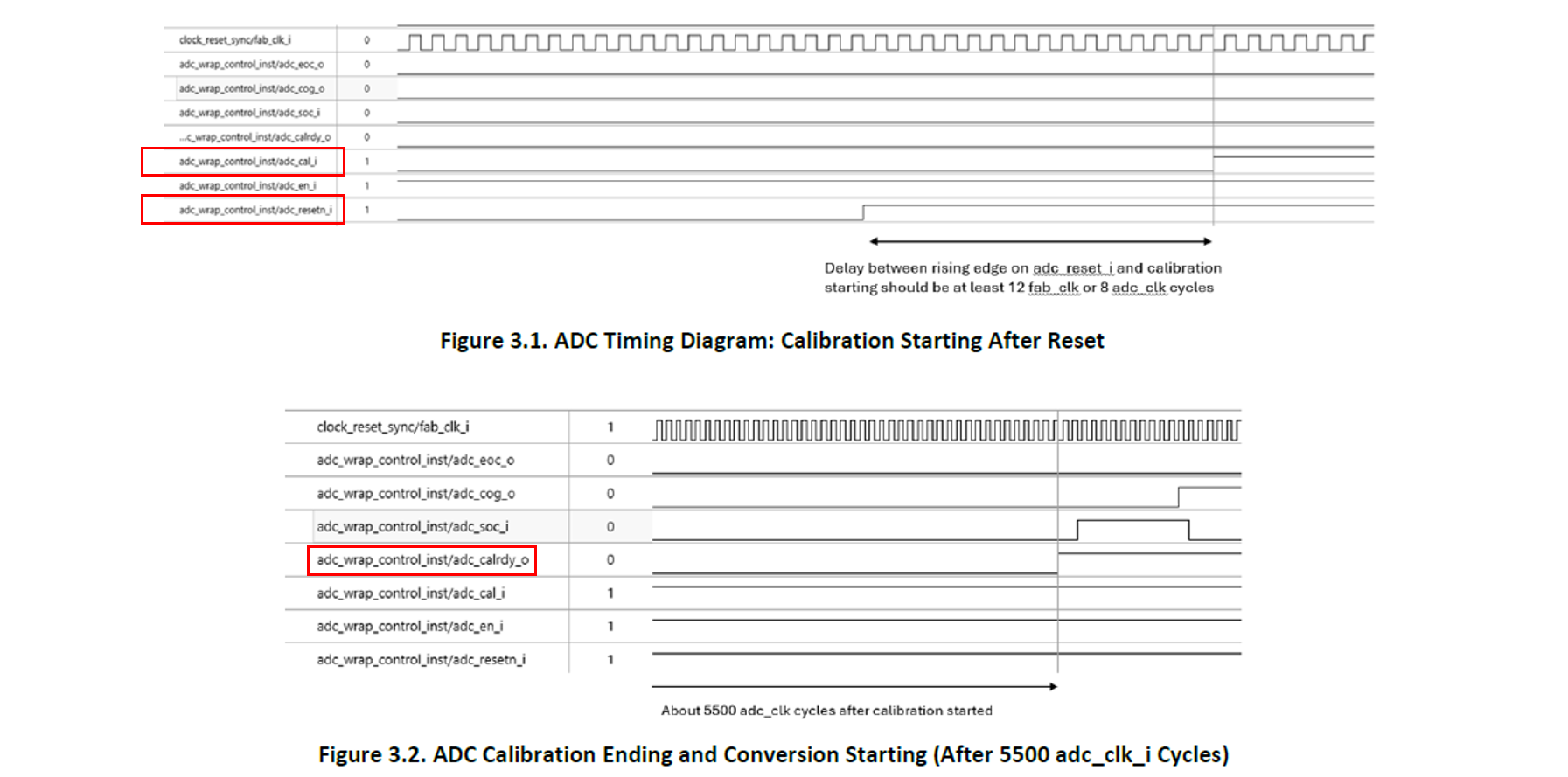 One of the most frequent sources of unexpected ADC behavior lies in the timing and sequence of calibration and conversion operations. The ADC calibration process is not optional—it is a mandatory step to ensure that the conversion results fall within the specified accuracy limits. According to Figure 3.1 and Figure 3.2 of the Nexus ADC User Guide, the calibration ready signal (adc_calrdy_o) must be asserted before initiating any ADC conversion via the adc_soc_i signal.