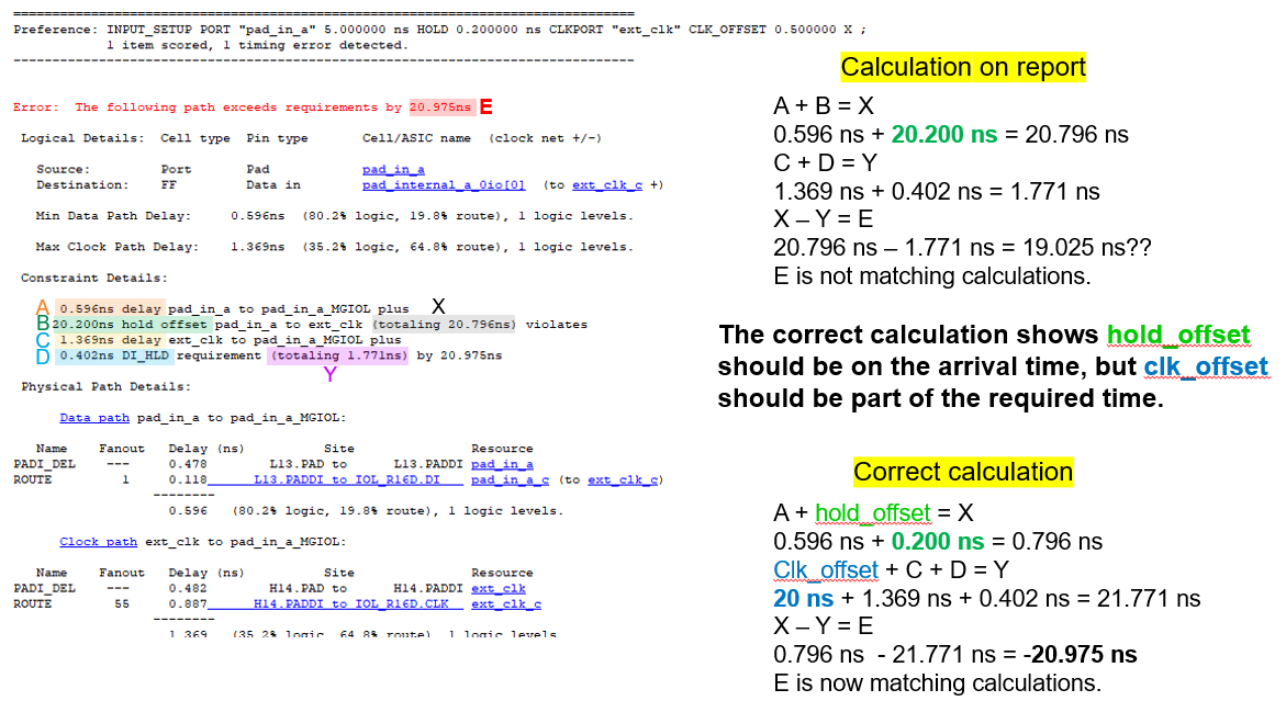 Consider an example report with INPUT_SETUP preferences, one with a 0.5 X CLKOFFSET and another one with -0.5 X CLKOFFSET. The calculation should be the following: