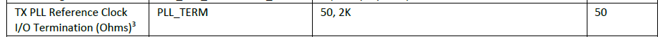 PLL_TERM is the parameter to adjust the TX PLL RefClk internal termination.