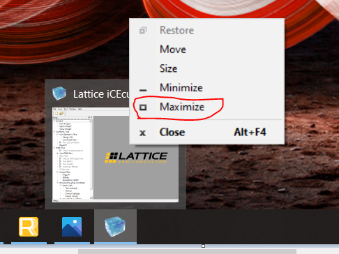 Point the mouse to iCEcube2 on taskbar then hover to the mini window, Right click to see window options. Then choose MAXIMIZE