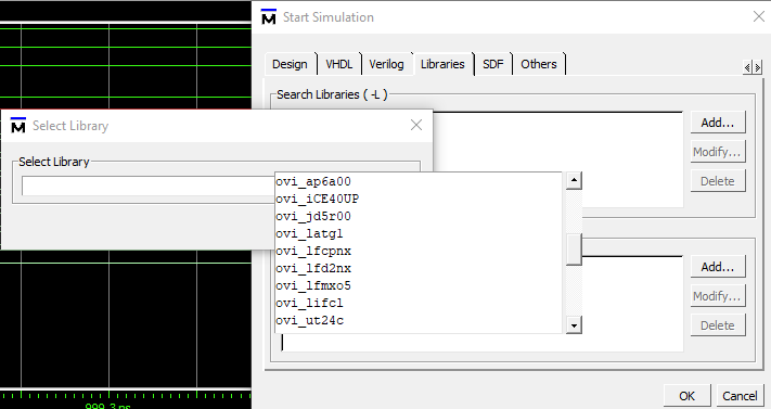 3) Select or Add the following libraries: ovi_lifcl , pmi_work , lifclm work