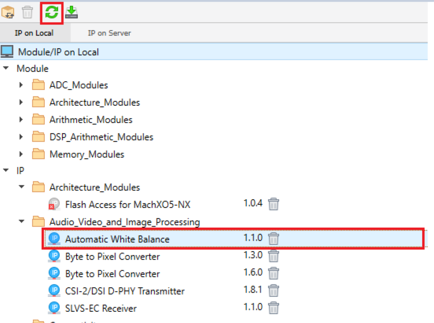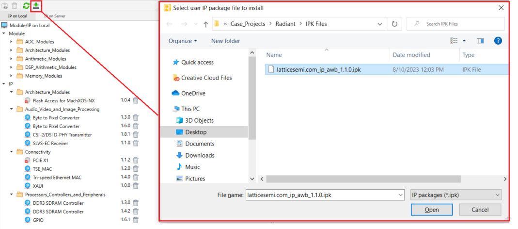 5. To install the IP on Radiant, click the Install icon and locate the *.ipk file: