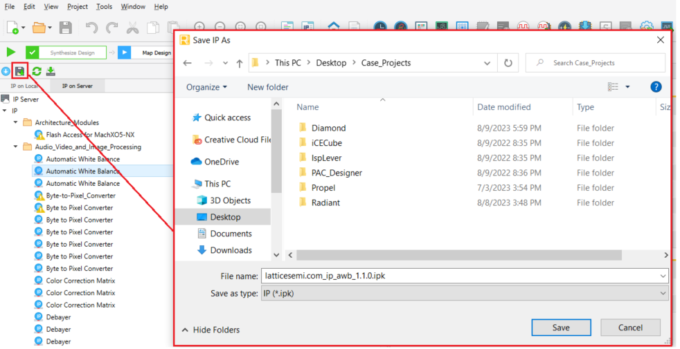 2. Go to IP Catalog > IP Server and click on the IP that the user wants to download and save.