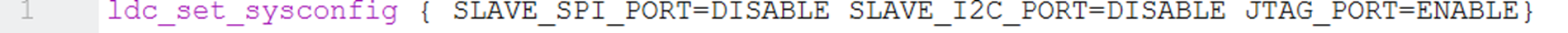 In here multiple ldc_set_sysconfig lines are used but HAVE DIFFERENT PARAMETERS. In this case, there will be no confusion as every line sets a different setting. The only setting affected will be the setting inside { }. See below for the reflected setting in the device constraint editor.