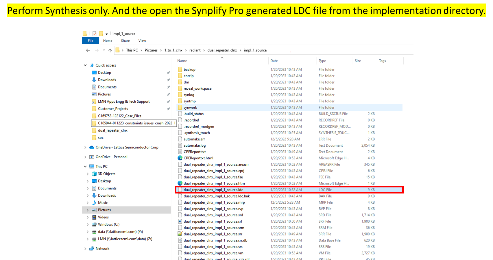 2. Find the Synplify Output .ldc file (the .ldc file will be named <project name>_<implementation_name>.ldc')