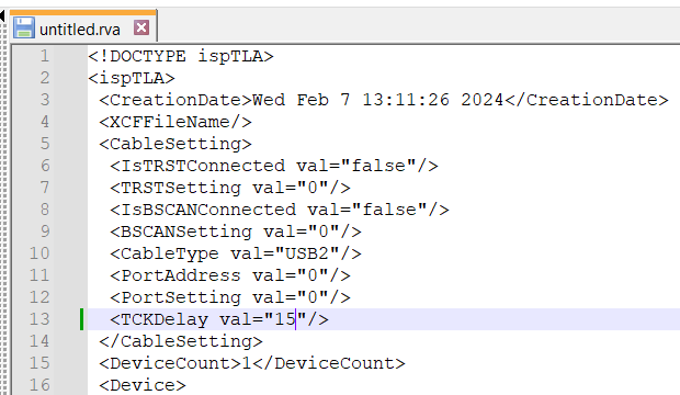 3. Type the following command: rva_new_project -rva "<file_name.rva>" -cable USB2 -rvl "<file_name.rvl>" -dev "<device>-X" -port 0 -xcf ""